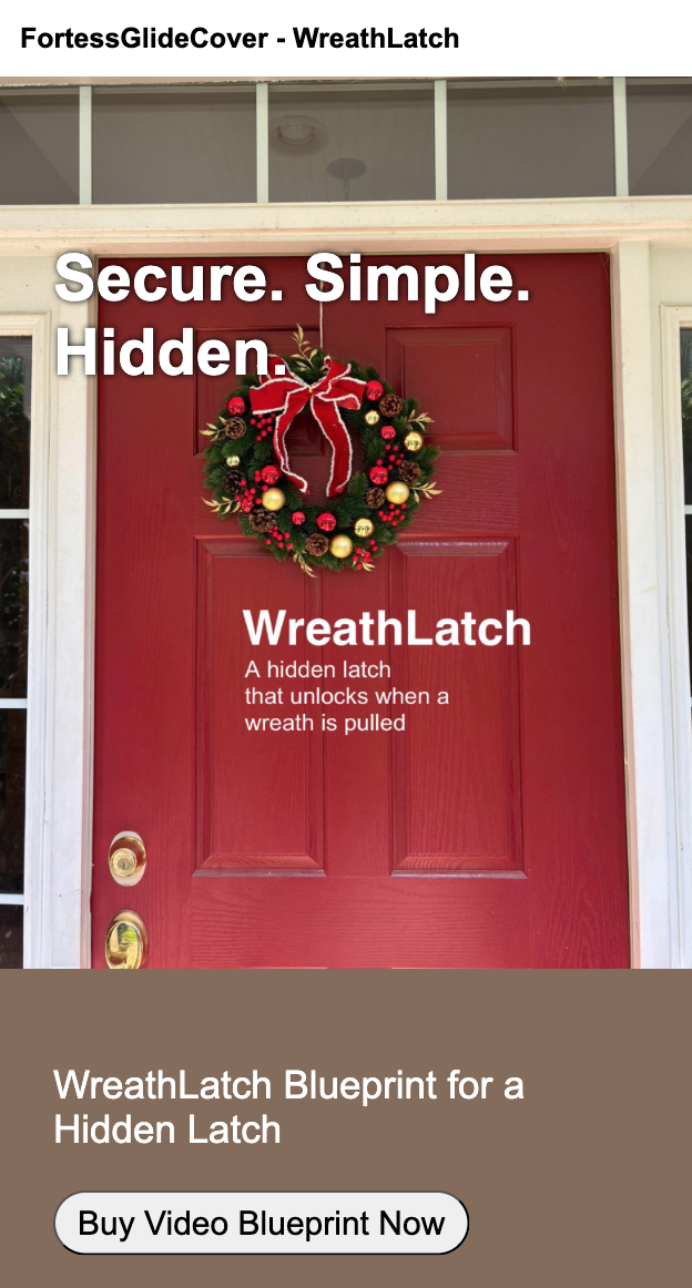 Invented and created in 2025, A hidden latch that unlocks when a wreath is pulled, and a security shutter for window door security and energy efficiency